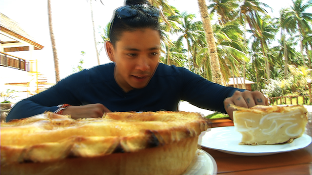 When it comes to buko pie, Dapa is to the locals of Siargao as Laguna is to Manilenos. Drew observes that the pies here are bigger than the ones usually sold in Laguna. The coconut strips seem smaller but the taste is just as good. According to Drew, Dapa's buko pies are not sickeningly sweet. "Nandun pa rin ang hinahabol mong texture. 'Yan ang gusto ko sa buko pie. Swabe lang!"