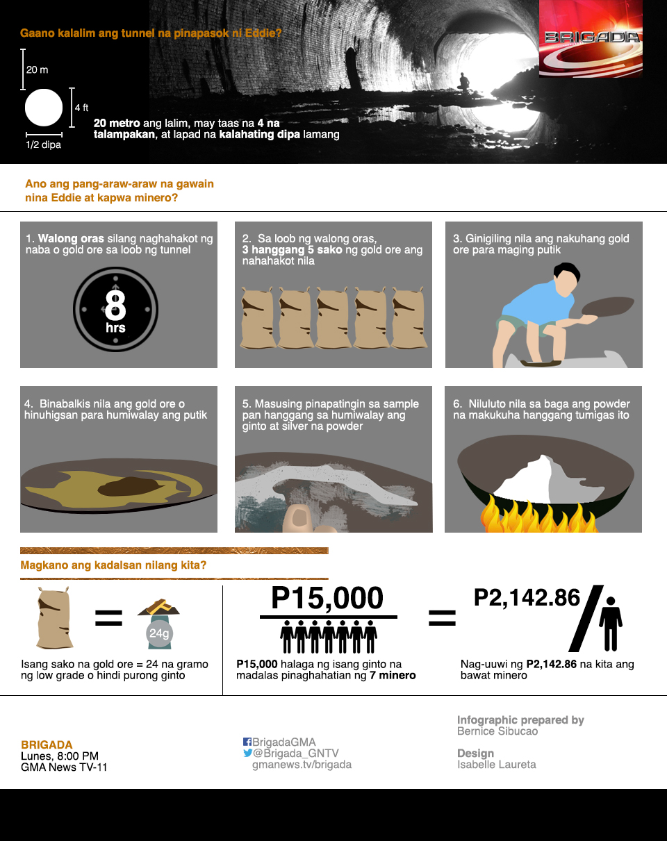 Sa pagbisita ng “Brigada” sa Benguet, nakilala ng programa si Eddie Nattem. Dalawampung taon na siyang nagtatrabaho sa minahan. Sinamahan ng “Brigada” si Mang Eddi sa minahan at inalam kung paano tinutubog ang mailap na ginto.