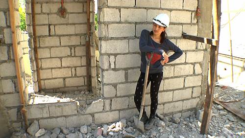 Mula sa pagpukpok, pagbuhat ng mga bakal at hollow blocks, paghalo ng semento, hanggang sa pagtibag ng matitigas na bato, sisiw lang daw ang mga ito kay Ate Marilou. Sa katunayan, dalawangpung taon na niyang ginagawa ito.