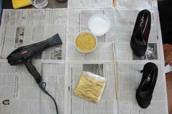 Keep in mind that this works best on leather/leatherette pumps. Suede might not hold the glitter very well. Also, try not to get these shoes wet as this might cause the glitter to come off more quickly.