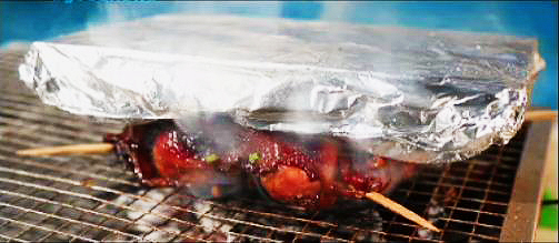 Tip: To avoid burning the barbeque sticks, let them sit in a bowl of water for an hour. Before grilling, brush oil onto the grill so the meat doesn’t stick.