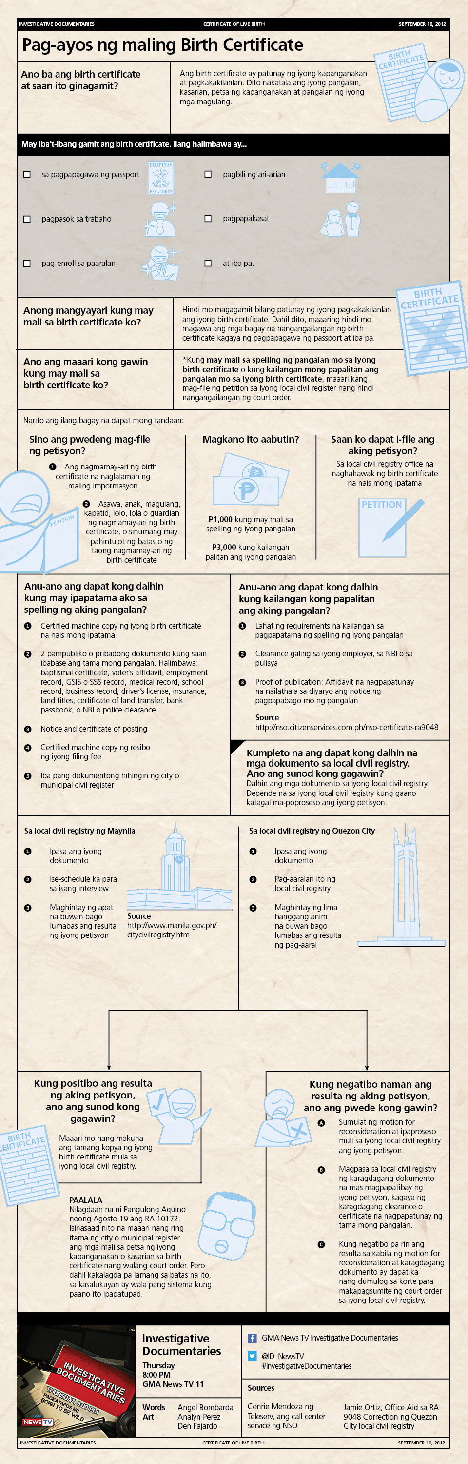 Ang birth certificate ang patunay ng pagkakakilanlan ng isang tao, kaya naman malaking perwisyo ang dulot kung may pagkakamali man dito. Pero huwag mag-alala dahil maari namang ipaayos ang mga pagkakamali sa birth certificate. Hatid ng programang "Investigative Documentaries," narito ang mga hakbang na maaring sundin para ayusin ito: