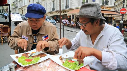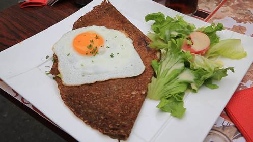 Matapos mamasyal, tinikman naman ni Jay ang authentic French crepe. Pero di tulad ng mga nakasanayan nating panghimagas na crepe na hinahaluan ng matamis gaya ng prutas, ice cream at syrup Sa Paris, itinuturing pala itong main course meal na pinapalamanan naman ng ham, itlog at mushroom.
