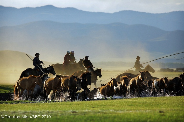 To get a meal, the Dorobo people of Kenya bravely attempts to scare off a pride of hungry lions from their freshly caught kill. Extraordinary Mongolian horsemen, who were 'born in the saddle', gallop across the biggest grassland on Earth, following herds of wild horses in their endless search for fresh pastures.