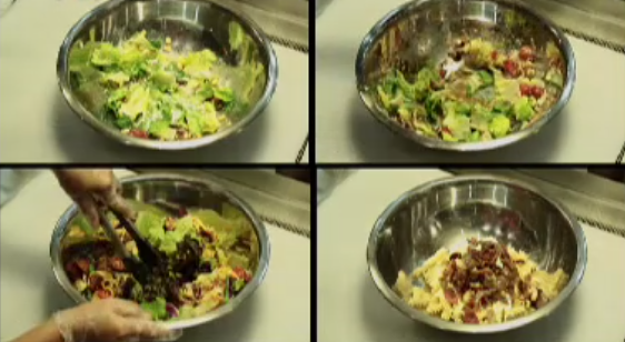 ![]() Julie Anne’s salad Base: romaine Dressing: honey mustard Toppings: cherry tomatoes cucumber raisins feta cheese tuna flakes walnuts | ![]() Denise’s salad Base: romaine Dressing: ranch Toppings: cherry tomatoes corn egg bacon feta cheese |