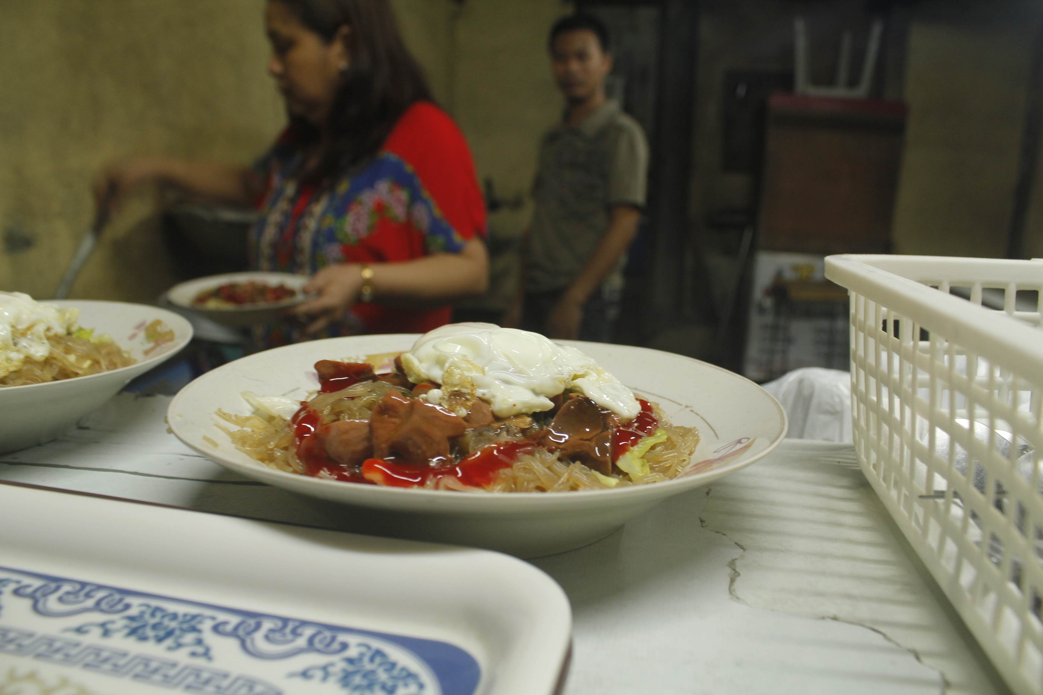 Both Tonipet and Alden were surprised as they cooked the house specialty of a panciteria in San Pedro: pancit maciang, a seemingly regular pancit bihon but with balun-balunan, fried egg, and catsup.