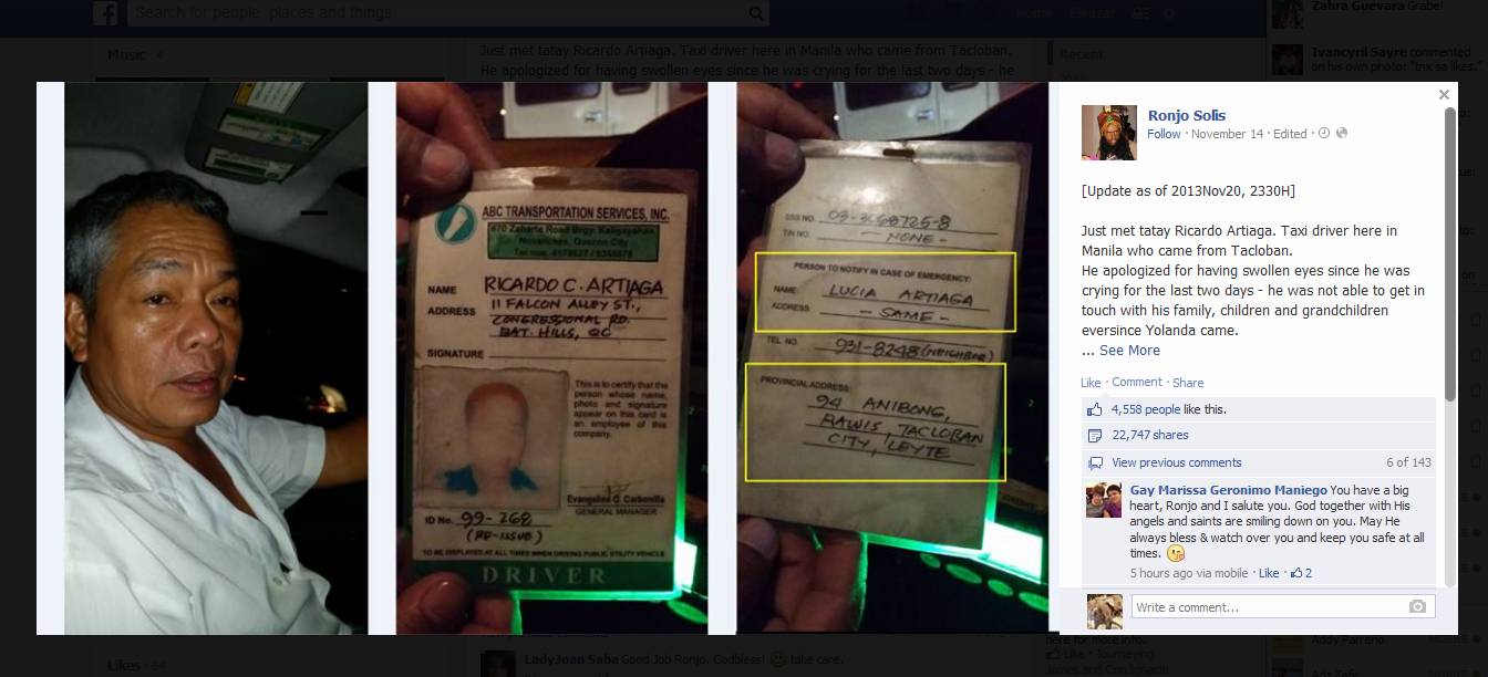 Noong nakaraang linggo, ipinakalat ang post na ito sa social media kung saan ipinapakita ang isang matandang taxi driver na mugto ang mata. Panawagan ng nag-post, matulungan sana si Tatay Ricardo.