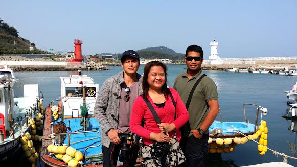 (Mula kanan) Sina "Nanum" Videographer Randy Mariñas, Executive Producer / Director / Writer Aileen Rae Perez at Director of Photography / Segment Producer Jericho Abalona sa Songjeong Harbor, Busan, South Korea