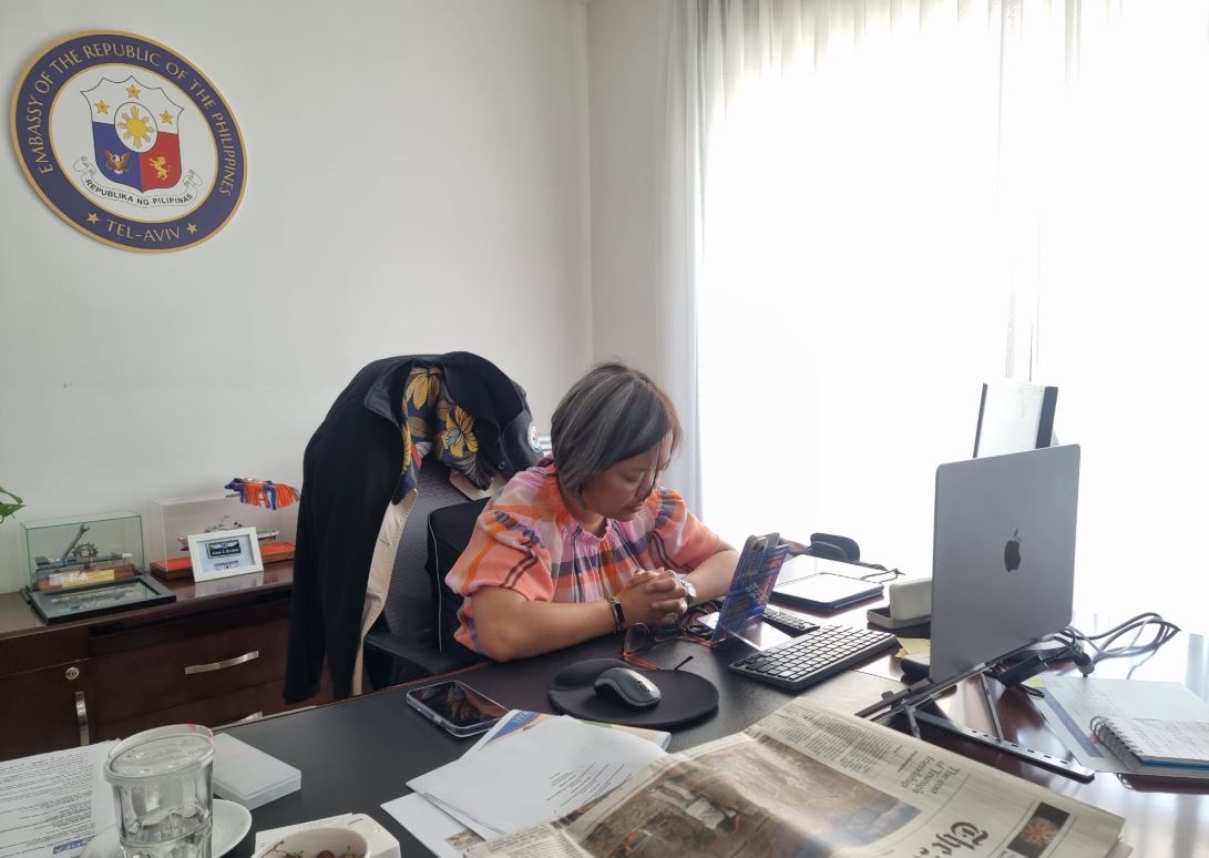 Mendiola conveyed her sympathies "for the loss of lives among Haifa residents due to the missile attack, including the late Filipina’s elderly parents-in-law, in whose home they perished together with her Israeli husband during the incident."