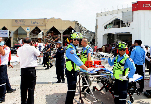 Medics gather near a Turkish restaurant following a gas explosion in Doha Feb. 27, 2014. Twelve people were killed, including two children, and about 30 wounded when a gas tank exploded at the Turkish restaurant in the Qatari capital. (Reuters)