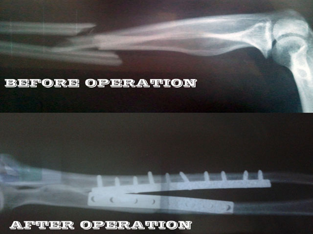 Nilagyan nila ng karton sa bandang ilalim at tinalian nila ng panyo at isinabit sa aking leeg. Doon na malinaw sa akin ang nangyari. Natisod lang pala ako sa isang bakal at hindi ko nakayanan ang bigat ng aking katawan. Natumba ako at naitukod ko ang aking kaliwang kamay.