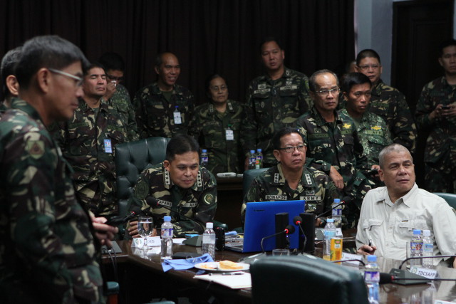 Top officials of the Armed Forces of the Philippines monitor the situation of Filipino peacekeepers in Golan Heights, as Syrian rebels started firing at their position on August 30.