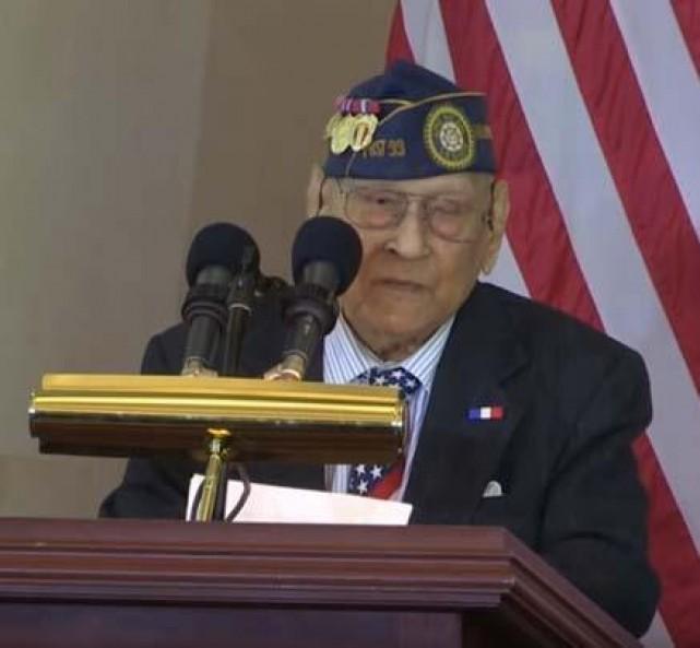 With these words, World War II veteran Celestino Almeda, 100, received a Congressional Gold Medal honoring the services of Filipino veterans of World War II.