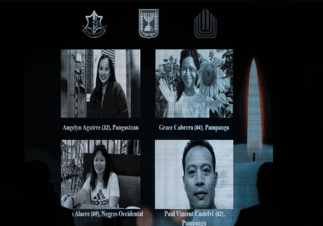 In a statement on Wednesday, Israel said Overseas Filipino Workers Angelyn Aguirre, Loreta Alacre, Grace Cabrera, Paul Vincent Castelvi, and Filipino-Israeli soldier Sergeant Cydrick Garin were included among the Jewish state’s fallen soldiers and civilians for this year’s Yom HaZikaron (Memorial Day).