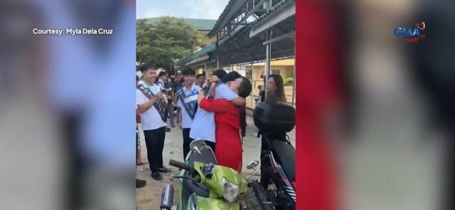 "Ito po 'yung surprise na hindi niya inakala talaga. Hindi ko po siya binigyan ng pagkakataon na isipin niya na uuwi ako sa mismong araw ng graduation niya," Myla said in an interview with GMA Pinoy TV.