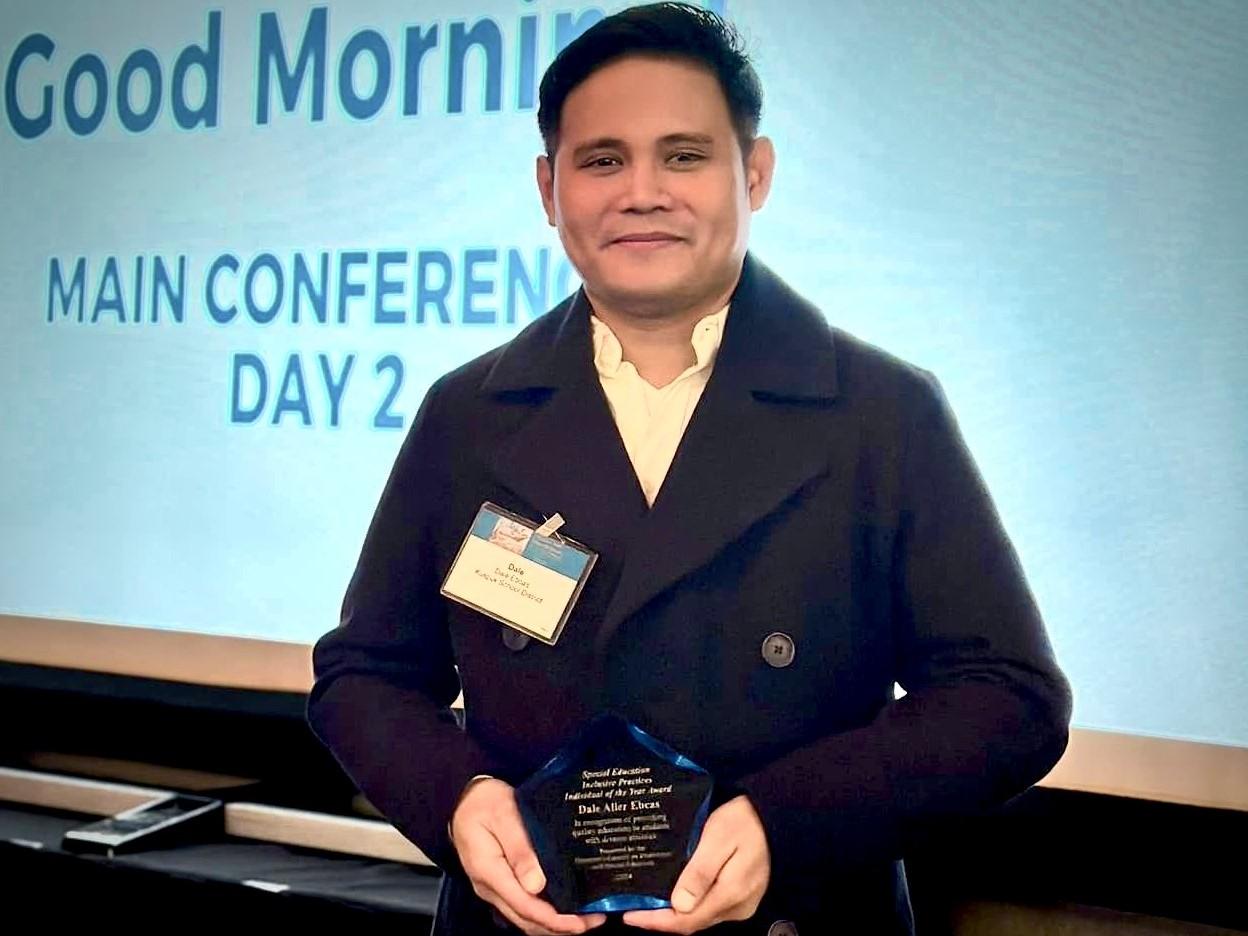 Hailing from Cagayan de Oro City, 29-year-old Ebcas has been teaching as a special education teacher in Kalskag Village, Alaska, for the past four years. He was bestowed with the prestigious "Individual of the Year Award for Special Education in Inclusive Practices."