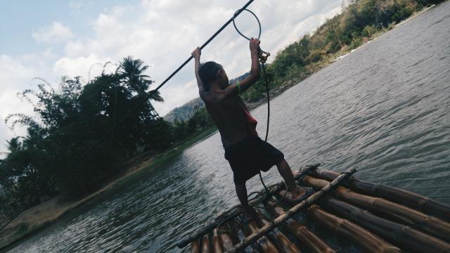 While resting in a store and chatting with some locals, I saw a young boy named Jonel who was about to cross the river using a bamboo raft. Jonel caught my attention because I wasn’t so sure if he could actually cross the raging river by his own. I called him out and asked if I could join and help. He didn’t say anything, but he signaled that I should hop in.
