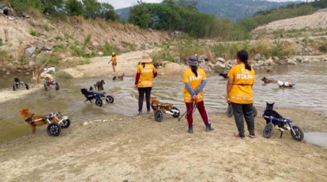 3) DOGS ON WHEEL CHAIRS