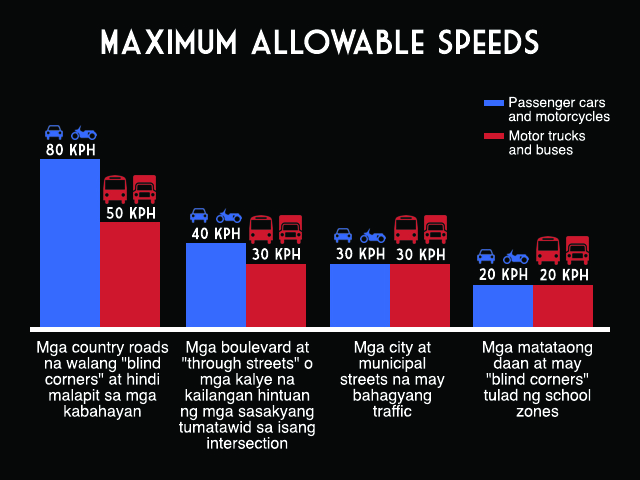 Base sa Republic Act No. 4136 o ang Land Transportation and Traffic Code, may iba’t ibang bilis ng pagpapatakbo depende sa lugar. Tandaan ang mga sumusunod na numero!