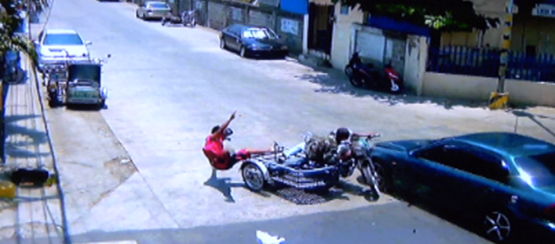 Binabagtas ng isang kotse ang kahabaan ng P. Gomez at nang marating ang intersection, dire-diretso lang ito. Ngunit bago pa makatawid nang tuluyan ang kotse, isang mabilis na motor na may sidecar ang pinilit na tumawid at bumangga sa kotse! Nahulog ang driver ng motor na may sidecar habang ang kanyang angkas sa likod ay tumilapon sa sidewalk!