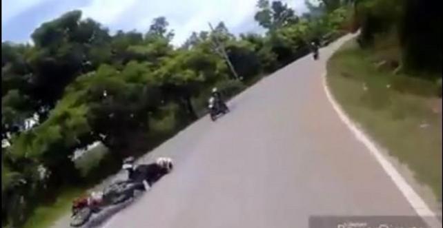 Sa kuha ng helmet camera, makikita na nag-overtake ang motorsiklo sa isang zigzag road. Kaya naman bumulaga sa rider ang mga kasalubong na motorsiklo. Sumemplang ang rider at angkas nito.