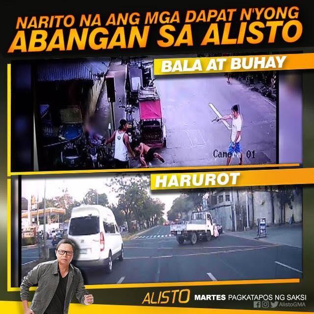 Abangan ang lahat ng aksyon sa Alisto. Mapapanood na ngayong Martes, kasama si Igan Arnold Clavio, pagkatapos ng Saksi sa GMA. Huwag maging biktima, maging Alisto!