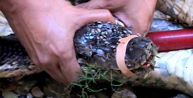 Doc Nielsen Donato encounters a painted bronzeback tree snake infested with tapeworms. The tapeworms create numerous cysts in the snake’s body, and this infestation could be the reason why the snake is malnourished for its size. Doc Nielsen attempts to create incisions in the snake to get rid of the tapeworms. “Kahit pa wild naman ‘yung snake I still have to treat it, I won’t let go of a chance like this; this is the only time a wild vet can help this animal.”