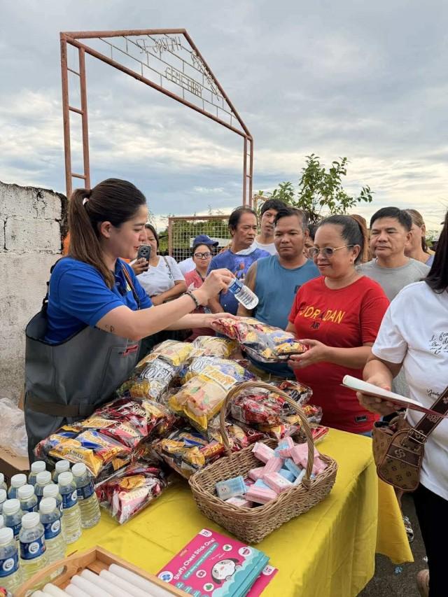 UH morning sunshine Shaira Diaz helped distribute Undas essentials stored in a specially modified “Sorpresa Tricycle” designed with an elevated base to navigate through flooded areas. The creative setup allowed the team to safely bring supplies to families honoring their departed amid knee-deep water.