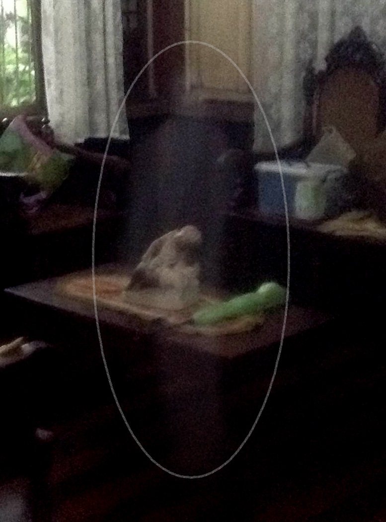 Kuha sa loob ng bahay sa Vito Cruz. Kapansin-pansin ang tila usok na hugis-tao sa tabi ng mesa sa sala.