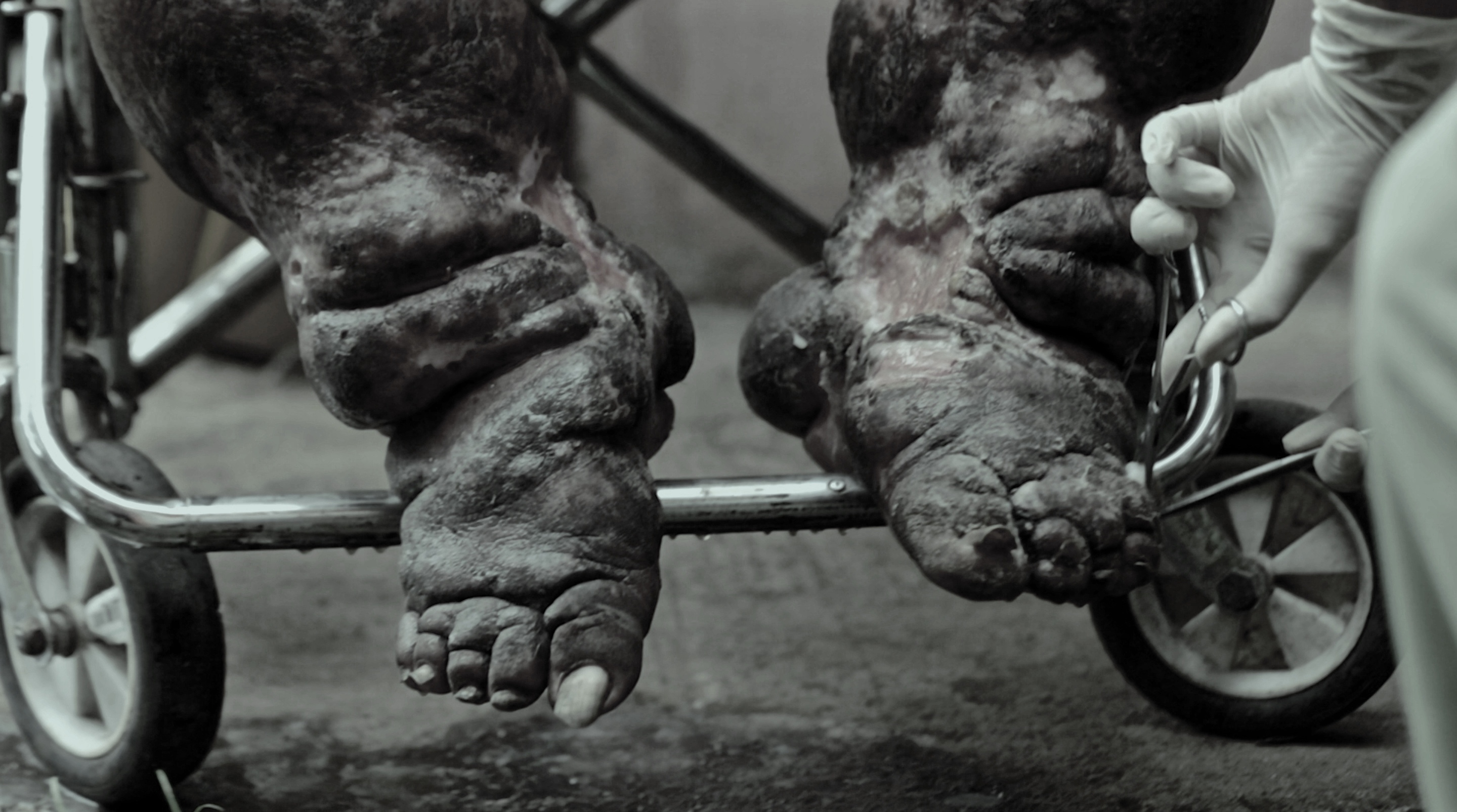 Nagsimula sa maliit na sugat, naging bukol hanggang sa lumaki ang kanyang binti at paa. Sa pagpapagamot ni Mang Fidel sa albularyo noon, sinabihan siyang galing daw ito sa kulam. Inisip niyang maaaring totoo ito. Minsan na raw siyang nagkaroon ng kaaway, siya ay isinumpa na bibigyan ng kakaibang sakit. Halos tatlong dekada na niyang iniinda ang karamdaman.