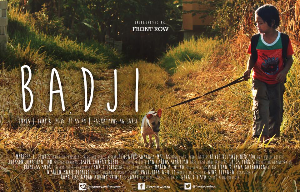 Kilalanin si Rommel at ang asong si Badji sa Front Row - ang itinanghal na 2015 Gold World Medal Awardee bilang Best Public Affairs Program ng prestihiyosong New York Festivals ngayong Lunes, June 8, pagkatapos ng Saksi sa GMA-7.