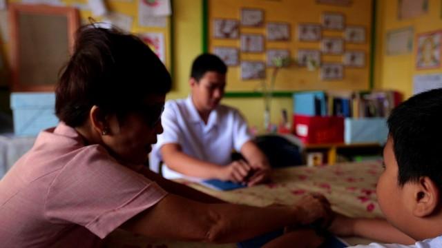 Araw-araw, kasama ni Teacher Helen ang kanyang kapatid papasok sa paaralan. Apat na taong gulang siya nang magkasakit at halos aninag na lang ng mga kulay ang nakikita. Dahil sa tuluyan nang nabulag noong 1996, kailangan siyang gabayan sa pagsakay sa tricycle at jeepney para ligtas na makarating sa Taal Central School sa Batangas.