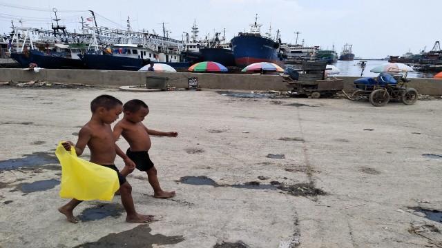 Siblings Dodong, 6 yrs old and Chuckie, 4 yrs old climb to big boats docked at Navotas port to ask for food in order to survive.