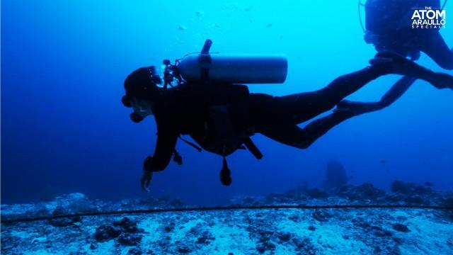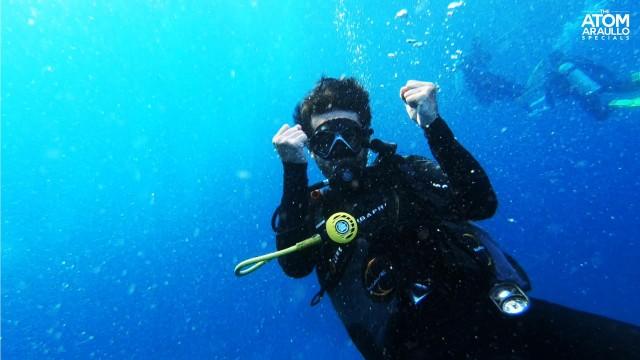 In Monad Shoal and Gato Island in Malapascua in Cebu, Atom also dives underwater in the only place in the world where thresher sharks can be viewed with certainty.