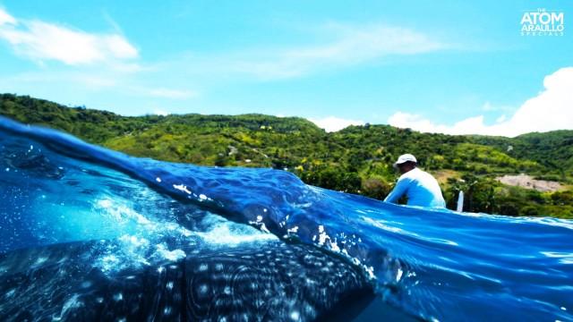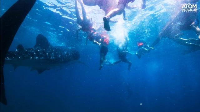 Pinasyalan din ni Atom ang bayan ng Oslob sa Cebu, isa rin sa dinarayong whale shark interaction site. Pero may ilang bumabatikos sa paraan ng turismo sa Oslob dahil pinapakain ng mga mangingisda ang mga butanding para lumapit sa mga turista.