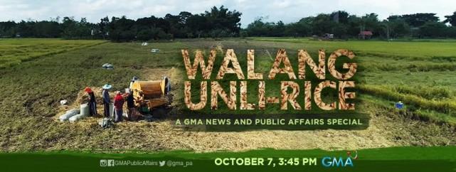 Ngayong Oktubre, inihahandog ng GMA News and Public Affairs ang “Walang Unli-Rice,” isang napapanahong dokumentaryo na tatalakay sa industriya ng bigas sa bansa. Layunin ng dokumentaryo na ipakita ang kalagayan ng mga ordinaryong Pilipino sa gitna ng nangyayaring kakulangan sa NFA rice at pagtaas naman ng commercial rice. Ipapakita rin ang epekto ng pagtaas ng presyo ng bigas at iba pang bilihin sa hanay naman ng mga nasa middle class kasabay ng inflation rate na pumalo 6.4% noong Agosto, ang pinakamataas sa nakalipas na siyam na taon.