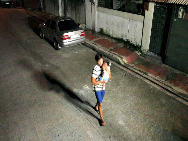 Sa isa pang CCTV video, makikitang bitbit na ng lalaki si Baby Angel. Gumagalaw pa ang bata, pero kalung-kalong na ito ng mama sa CCTV.