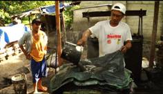 At bago pa ito humalo sa ilog, tahimik na sinasalok ni Anghel ang maputing likido sa ibabaw ng tubig. Maaaring patapon na ito para sa iba, pero para sa kanilang nagtatrabaho sa “kapahan”, sa mala-palayan ng napapanis na tubig, ito pa lang ang simula. Kailangan pang lutuin ang mga katas na ito, kailangang pigain para sa natatanging langis.