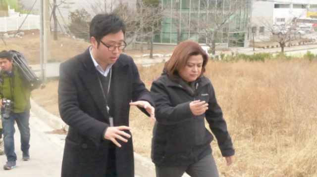 Lee Myungwon, project manager of POCOG’s Engagement Team, welcomed the team in the construction sites in Gangneung, a coastal city on the eastern part of the country. Collectively called the Gangneung Cluster, this will be the venue for ice sports such as curling, ice hockey, speed skating and figure skating.