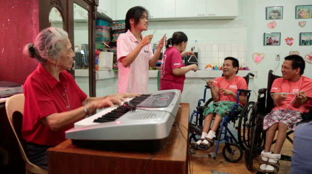 In Caritas Manila, her students’ condition varies—from cerebral palsy, to intellectual disability, to visual impairment. Many of them arrive in her class bound to a wheelchair. But despite their condition, once the music plays, you see a spark in their eyes, twisted limbs start to move to the beat, and once in a while, a glimmer of a smile. But no smile is bigger than that of an old lady whose heart is overflowing with love for these children whom most people have given up on.