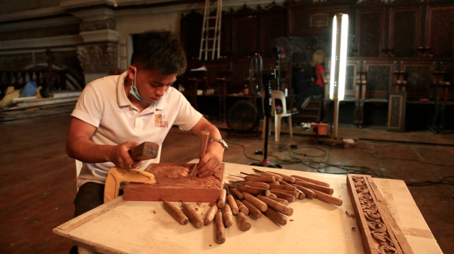 Paolo Nunez, 26 years old, belongs to the first batch who trained in carpentry. He recalls how joining the classes in Escuela Taller changed his life. He is now part of the conservation team working on the historical Malate Church.