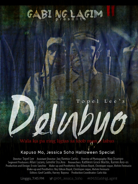 Under the direction of Topel Lee, Delubyo tells the story of a group of volunteers who were stranded inside an office building. It was 2009, Typhoon Ondoy was wreaking havoc outside while inside, the volunteers gathered around a single lit candle, telling stories.