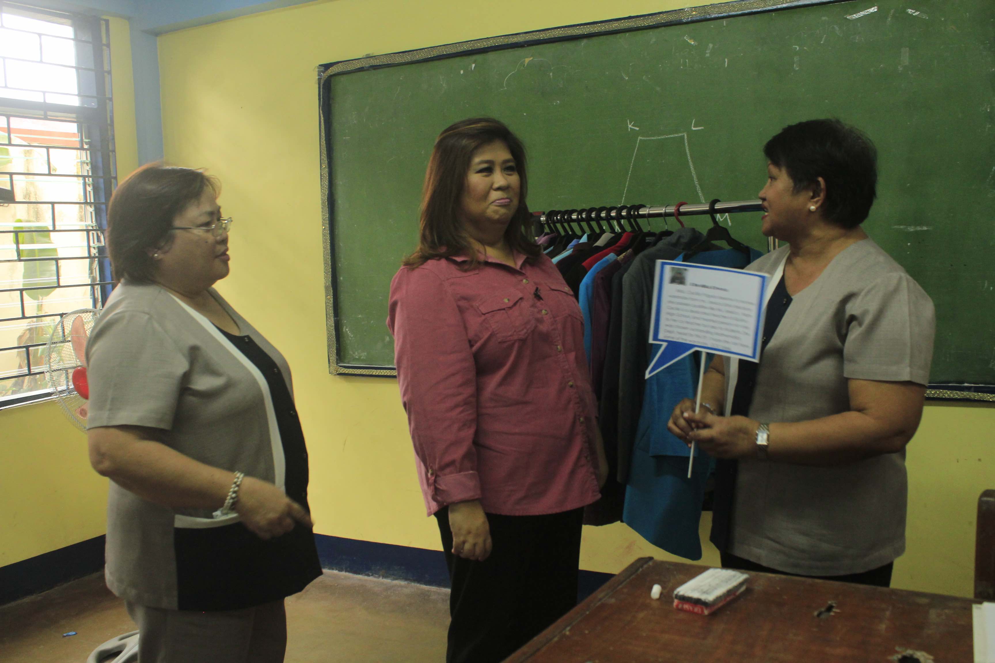 PINK, GRAY, BLUE! Ms. Soho was busy helping Teacher Cecille and Teacher Rhodita with fitting some of the clothes while the students in the background screamed for their preferred color and style. With the KMJS team was a dressmaker who could take their measurements and have the clothes altered.
