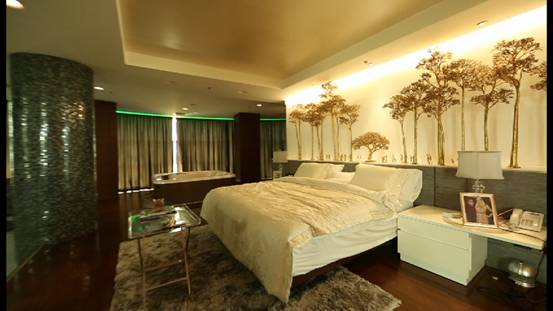 Sa loob nito makikita ang apat na pillars na pinalilibutan ng mother of pearls. Ang headboard ng kanyang kama ay gawa pa ng artist na si Ferdinand Cacnio. Puro automatic ang gamit niya sa loob ng kanyang bahay mula sa ilaw hanggang sa mga kagamitan sa loob ng banyo. Kayang-kaya raw niya itong kontrolin kahit nasa ibang bansa pa siya.