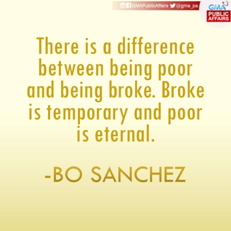 Bo explains that most Filipinos have this mentality that being rich is associated with evil and that God only favours the poor. However, he believes that there is nothing wrong with being wealthy as long as we allot a portion of this money to advance God’s kingdom. He also adds that God doesn't want anyone to remain poor and it is our mission to rise above poverty: