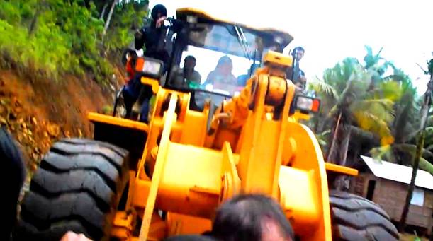 Sa isang video na nakalap ng Reporter's Notebook, makikita ang tila pagsagasa ng isang payloader sa ilang taong nagbabarikada. Dinig ang palahaw ng mga tao at iyak ng ilang mga bata. Sugatan ang ilan sa mga residente.