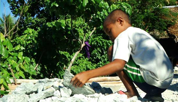 Sa itaas ng malalalim na butas, abala naman ang walong taong gulang na si Mark sa pag-iipon ng mga batong may ginto. Binubuhat niya ang mga ito pababa ng bundok. Kailangan niyang makaipon ng isang sako ng bato bago niya ito pwedeng ipagiling. Kadalasang kumikita siya ng isang daang piso kada araw. Kahit mabigat ang trabaho, kailangan daw niya itong gawin upang makabili ng gamit sa eskwela para sa kanya at sa kanyang dalawang kapatid. Ilan lamang sina Mark at Ricky sa mga menor de edad na nasasabak sa pagtatrabaho sa mga minahan sa Camarines Norte.