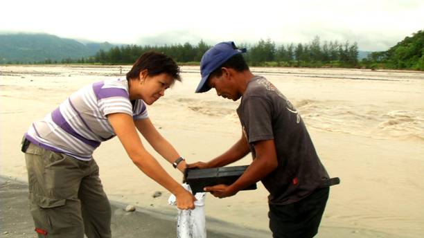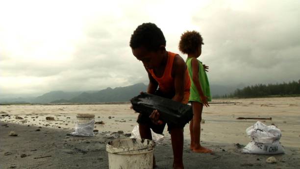 Kabilang sa mga inabutan namin si Mang Boy, apatnapung taong gulang. Madalas ay kasama ni Mang Boy sa pag-iipon ng black sand ang kanyang asawa na si Geraldine at ang kanilang dalawang anak na sina Bacho at Caloy. Maliit man ang pangangatawan ng dalawang bata, pilit nilang binubuhat ang mga magnet at buong lakas nilang pinipigilan ang mabilis na agos ng tubig makaipon lang ng black sand. Buong araw nila itong ginagawa, umulan man o umaraw.