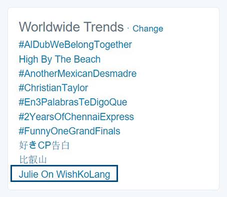 Nag-trend din sa Twitter ang "Julie on WishKoLang" noong Sabado, sa parehong nationwide at worldwide category.