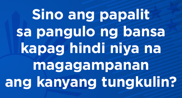 14. Sino ang papalit sa Pangulo kapag hindi niya na magagampanan ang kanyang tungkulin?